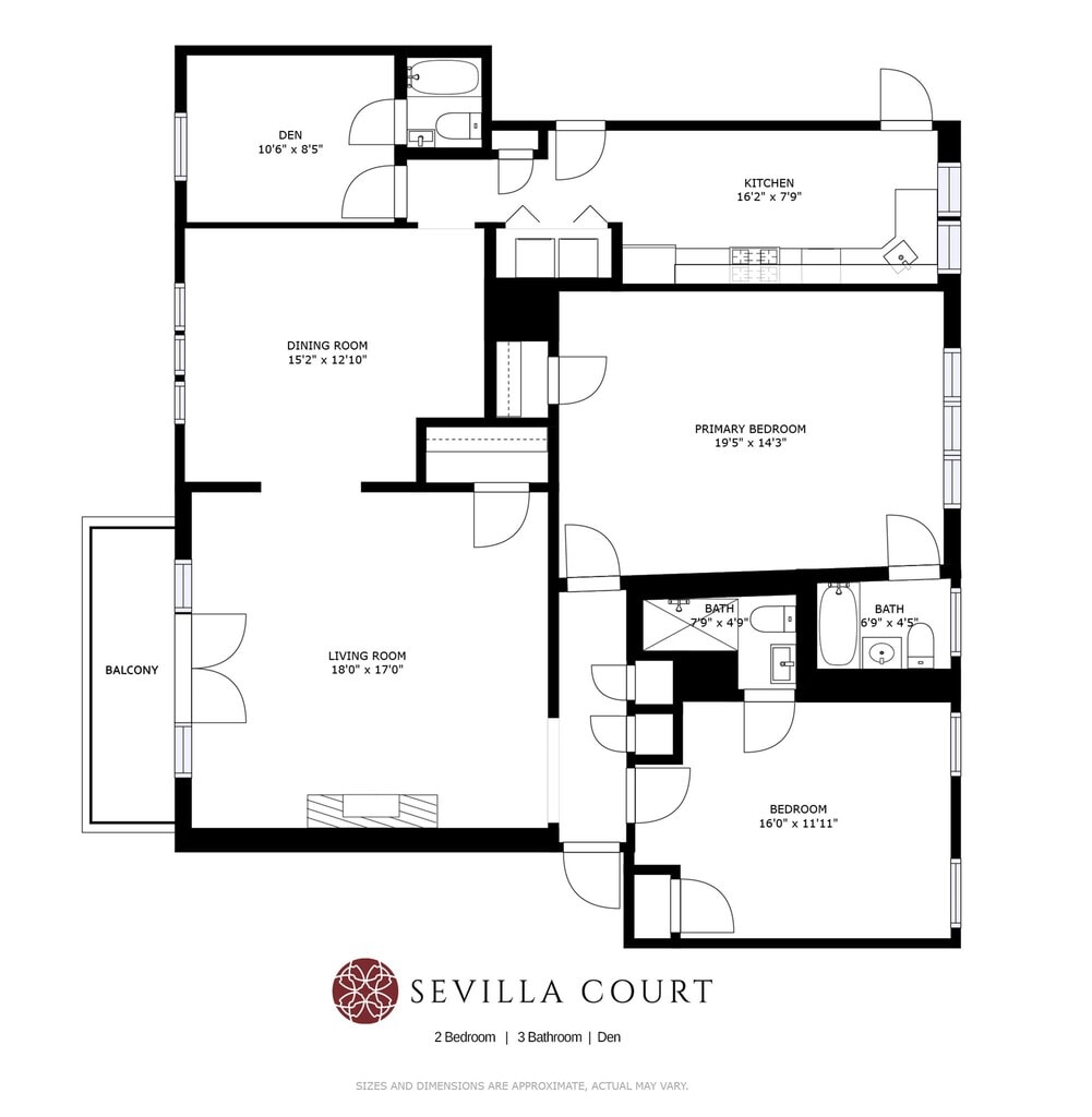 Apartment Model: 2 Bedroom 3 Bath w/ Den2 Bedroom, 3 Bath, 1600 sq ftAvailable April 17, 2026![]()