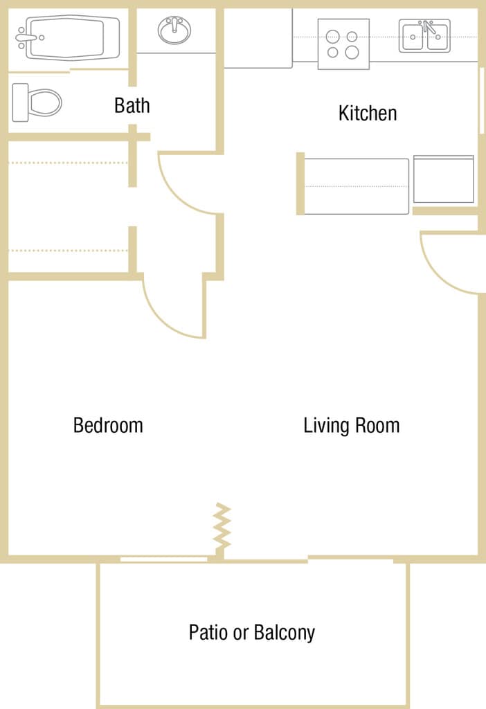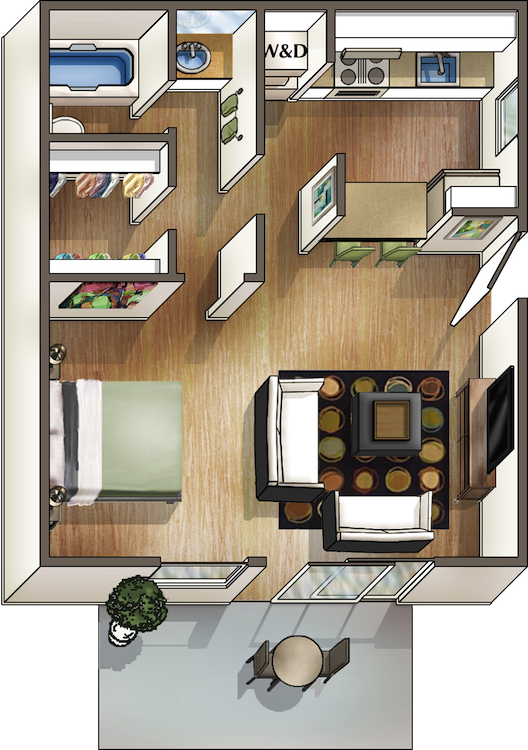 Studio, 1 Bath, 550 sq ftAvailable NowModel Gallery