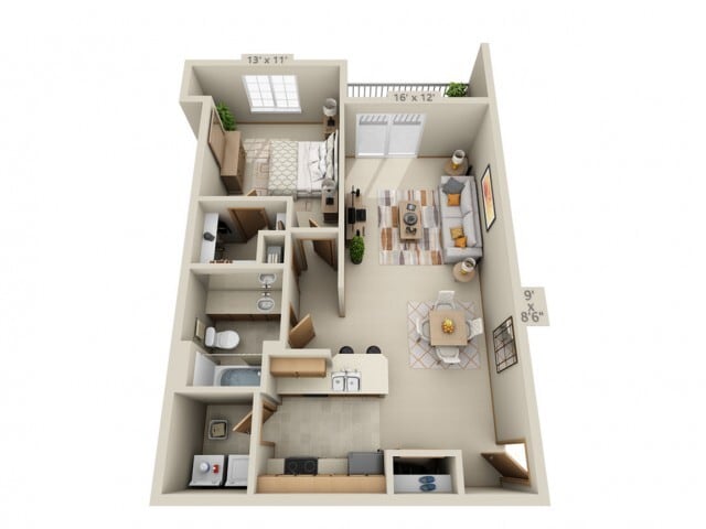 1 Bed, 1 Bath, 860 sq ftAvailable NowModel Gallery