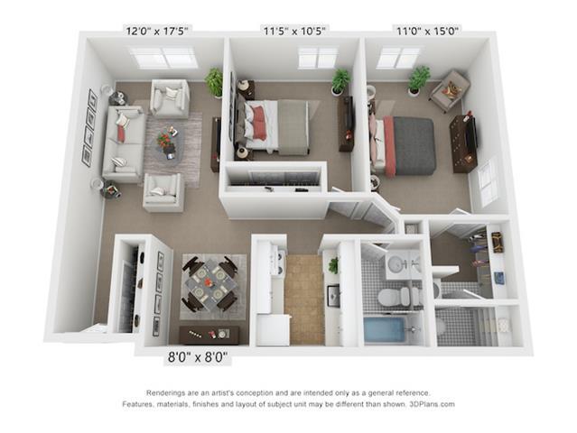 Apartment Model: THE ELDERBERRYCall For Rates2 Bedroom, 1.5 Bath, 950 sq ftUnavailable![]()