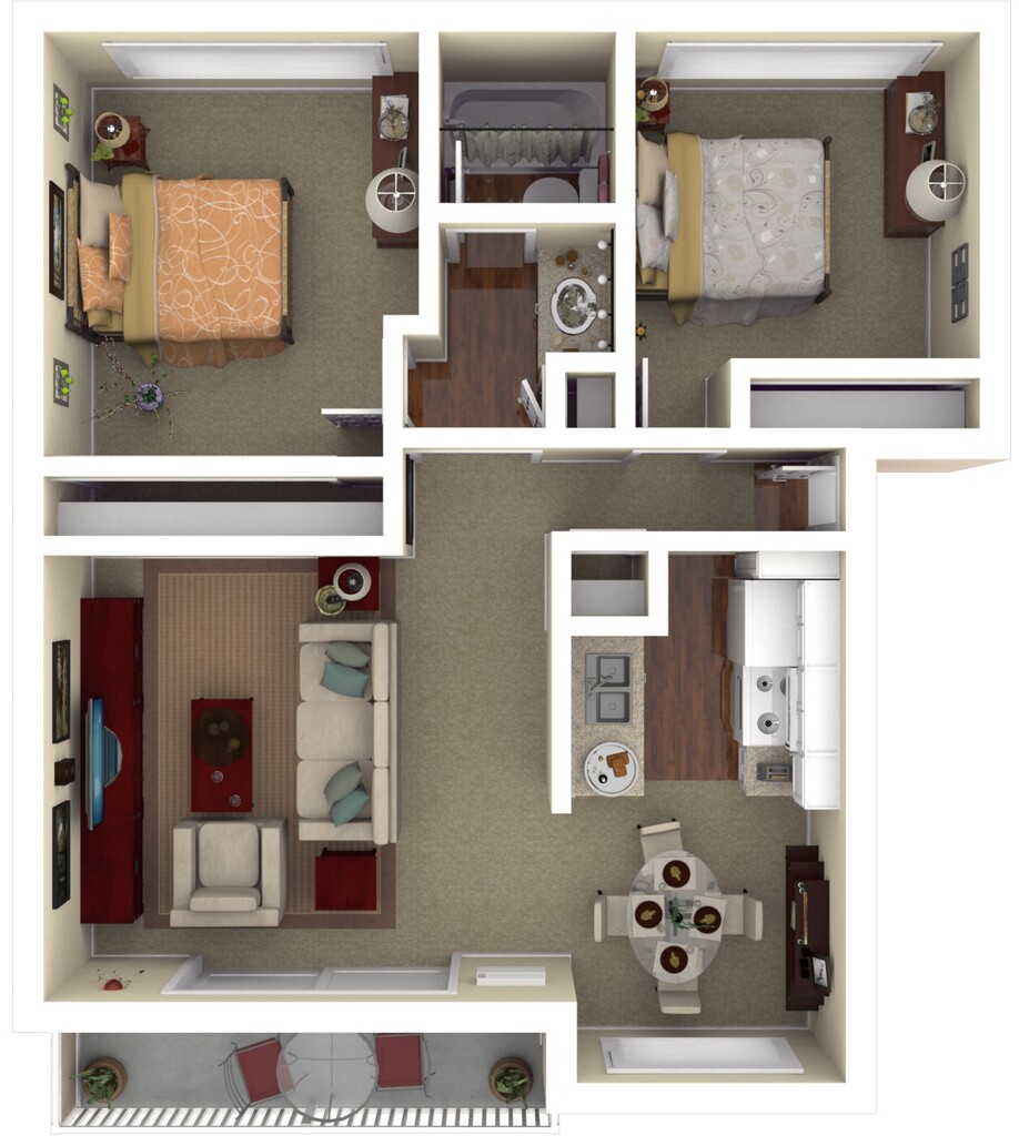2 Beds, 1 Bath, 825 sq ftAvailable NowModel Gallery