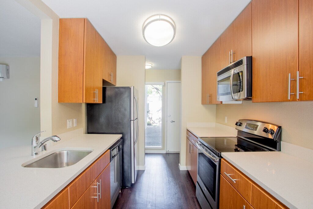Part inspiring modern home, part tranquil tapestry of all things green and leafy, Shadowbrook is the key to a life less meh. Indulge in delightful communal spaces like our Clubhouse with its chef-quality kitchen, our loaded strength and fitness studio, and our sparkling saltwater pool. We even have a pool for ducks. Ok, it's a pond. But it's a very nice pond with gorgeous rock work and cascading water. Shadowbrook is located in the sweet spot of Sunnyvale. Down the road is Murphy Avenue, a mecca for foodies and wine-enthusiasts, along with a bountiful weekly Farmers' Market. Or hop on the bike and cruise the cycle-friendly routes to the VTA and Caltrain lines. And of course, you're never far from an on-ramp to Silicon Valley’s big employers.