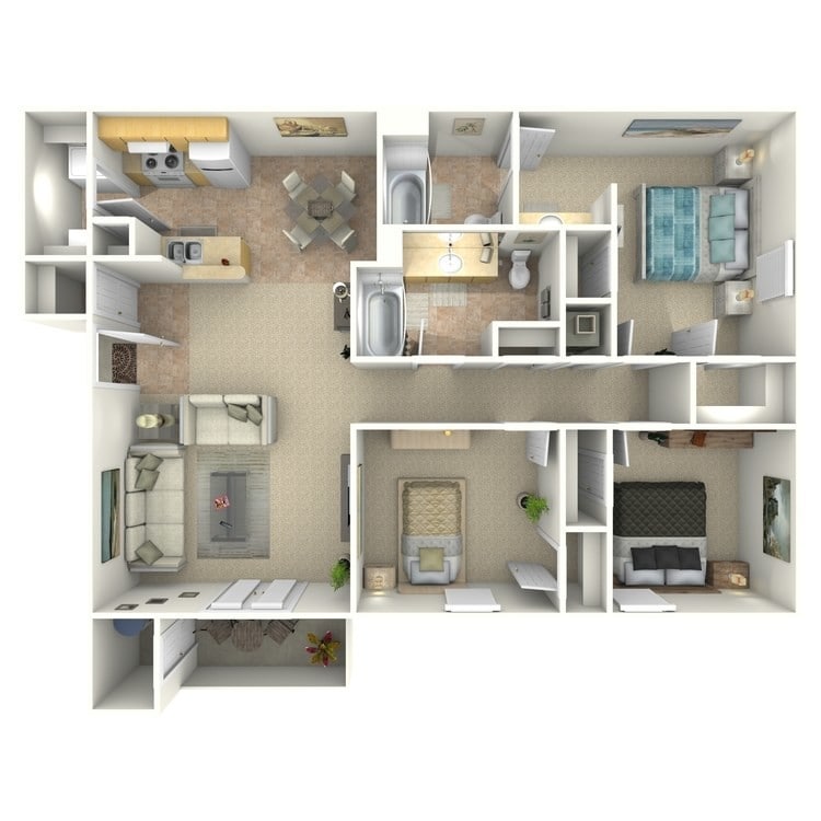Apartment Model: 3 Bed 2 Bath$1,1503 Bedroom, 2 Bath, 1280 sq ftAvailable Now![]()