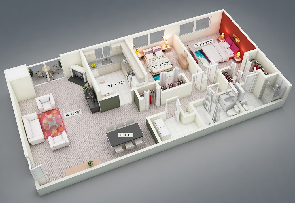 Two Bedroom Two Bath Regular - Floorplan 1 ![]()