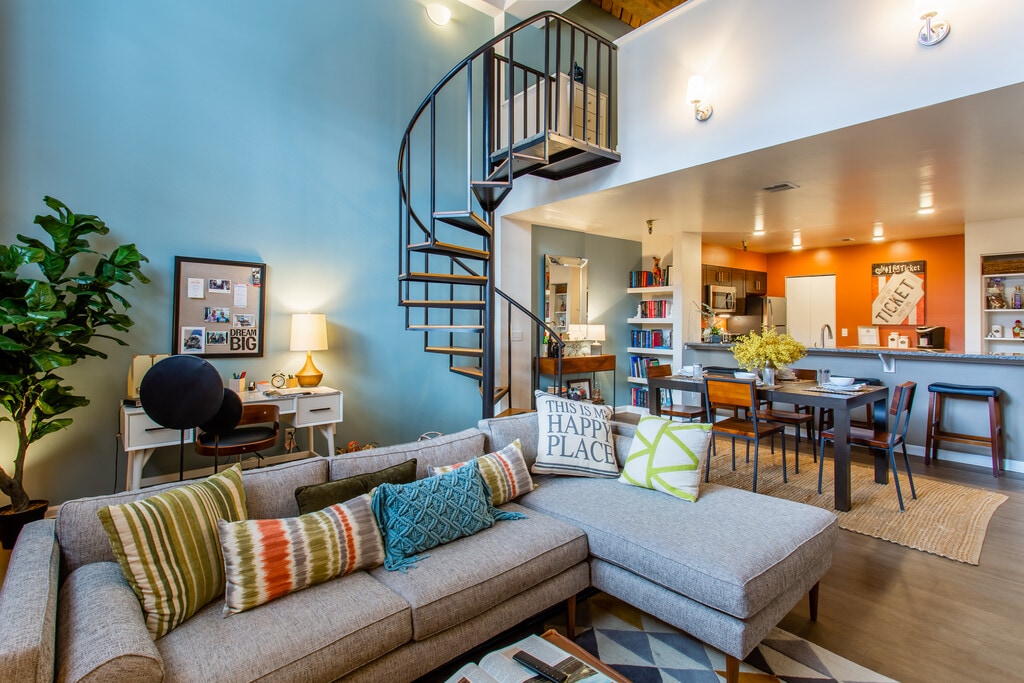 Apartment Model: 1 Bed 1.5 Bath - LoftFrom $2,3901 Bedroom, 1.5 Bath, 754-908 sq ftAvailable NowFloorplansPhotos![]()