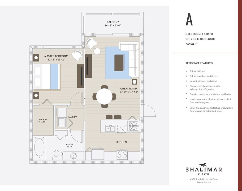 Apartment Model: Unit A1 Bedroom, 1 Bath, 772 sq ftAvailable NowFloorplansPhotos![]()