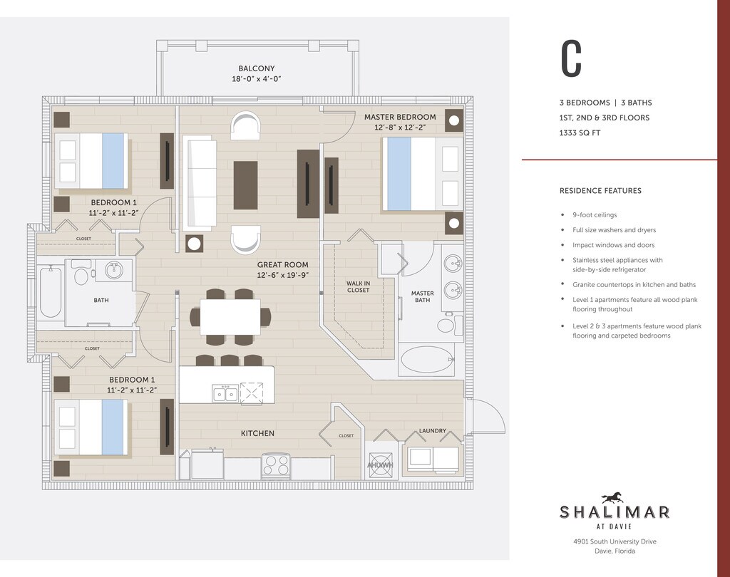Welcome to Shalimar at Davie a smoke-free community! Shalimar is located in the Cooper City A-school district. Select from a wide variety of town homes or one, two, or three bedroom apartment home layouts featuring condo-like qualities. Residents love the granite counter tops, stainless steel appliances, laminate wood floors, and spacious kitchen/dining areas! The quality of each apartment shines beyond the kitchen with 9-foot ceilings, spacious closets, and conveniences such as full size washer and dryer. We are perfectly located to the Florida Turnpike, I-595 and I-95 makes commuting to work a breeze and provides you with direct access to the greater Fort Lauderdale and Miami area. Schedule a tour today!