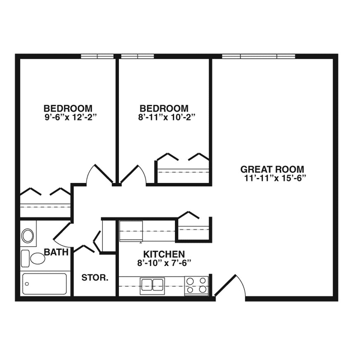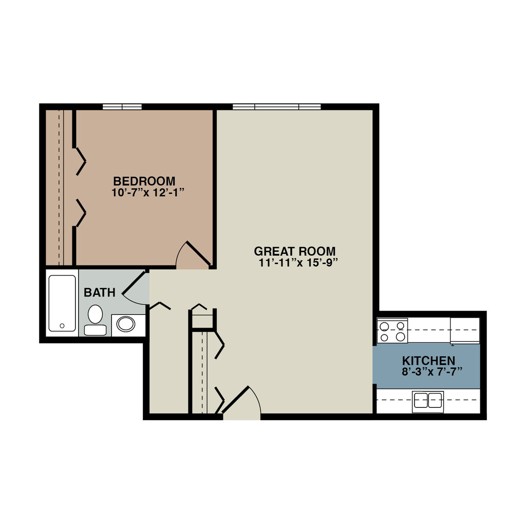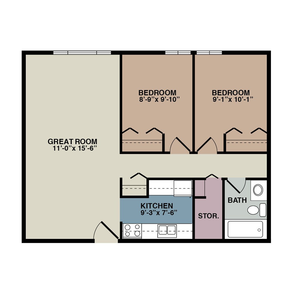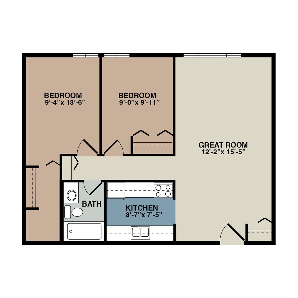 Apartment Model: 2A$1,3442 Bedroom, 1 Bath, 840 sq ftAvailable Now![]()
