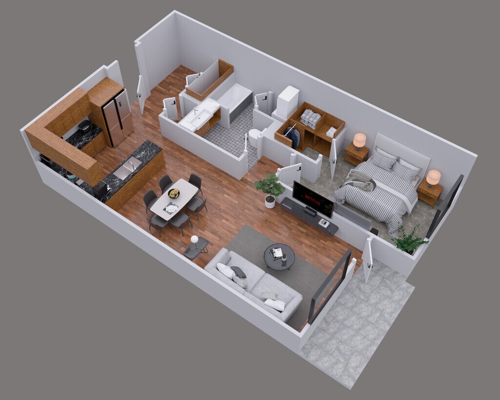 Arcadian - Floorplan 3 Apartment Unit: 402Apartment Model: Arcadian$2,1001 Bedroom, 1 Bath, 784 sq ftAvailable NowSerenity
