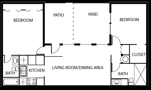 Two Bedroom/One Bath Max - Floorplan 1 Two Bedroom/Two Bath Max