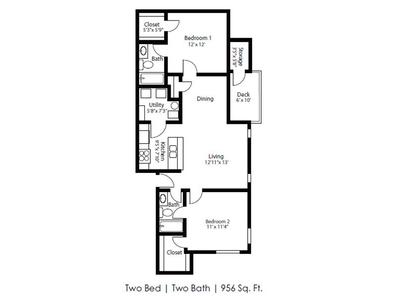 Apartment Model: 2 Bedroom2 Bedroom, 2 Bath, 956 sq ftUnavailable![]()