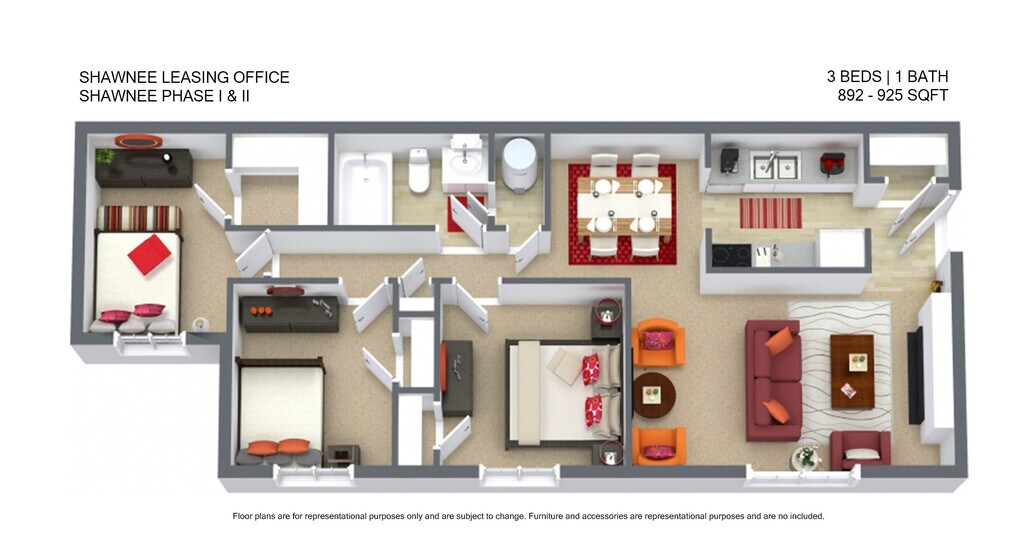 3 Beds, 1 Bath, 892-925 sq ftAvailable Jul 1, 2026Model Gallery