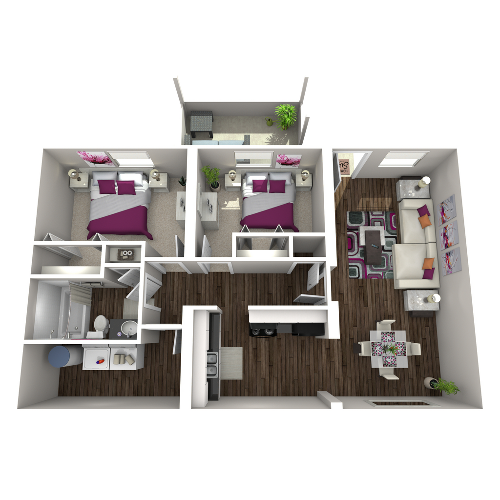 2 Beds, 2 Baths, 871 sq ftModel Gallery