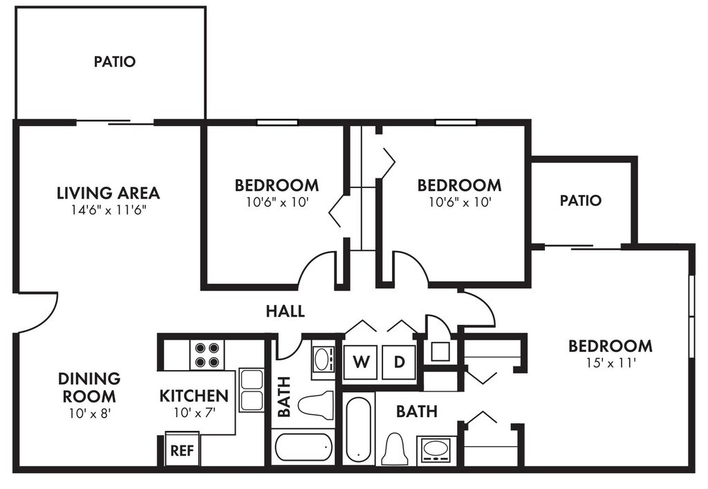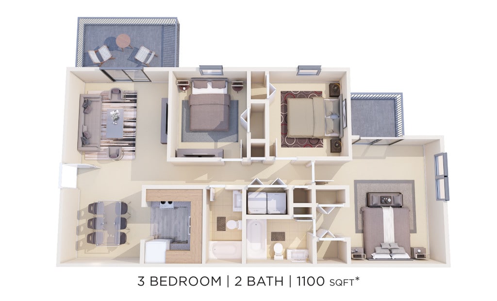 Two Bedroom 2 Bath - Floorplan 3 Apartment Unit: 821Apartment Model: Two Bedroom 2 Bath$1,3352 Bedroom, 2 Bath, 950 sq ftAvailable November 21, 2025Apartment Unit: 728Apartment Model: Two Bedroom 2 Bath$1,3652 Bedroom, 2 Bath, 950 sq ftAvailable November 30, 2025Apartment Unit: 739Apartment Model: Two Bedroom 2 Bath$1,4552 Bedroom, 2 Bath, 950 sq ftAvailable December 29, 20253 Bedrooms
