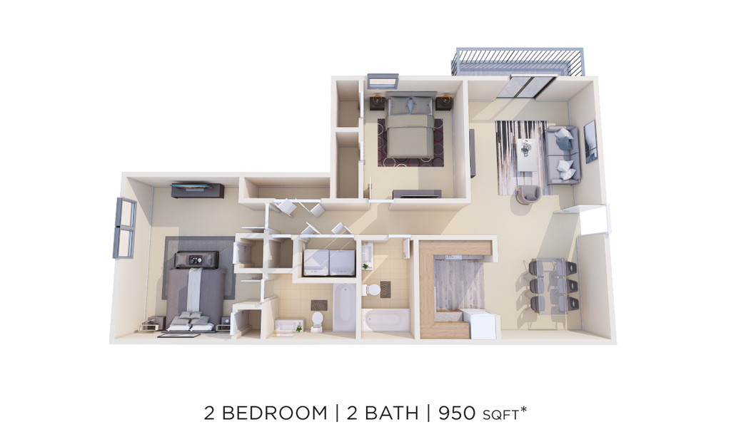 2 Beds, 2 Baths, 950 sq ftAvailable Nov 21Model Gallery