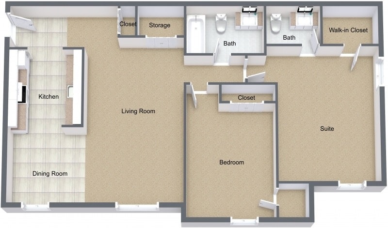 1 Bed, 1 Bath, 756 sq ftModel Gallery