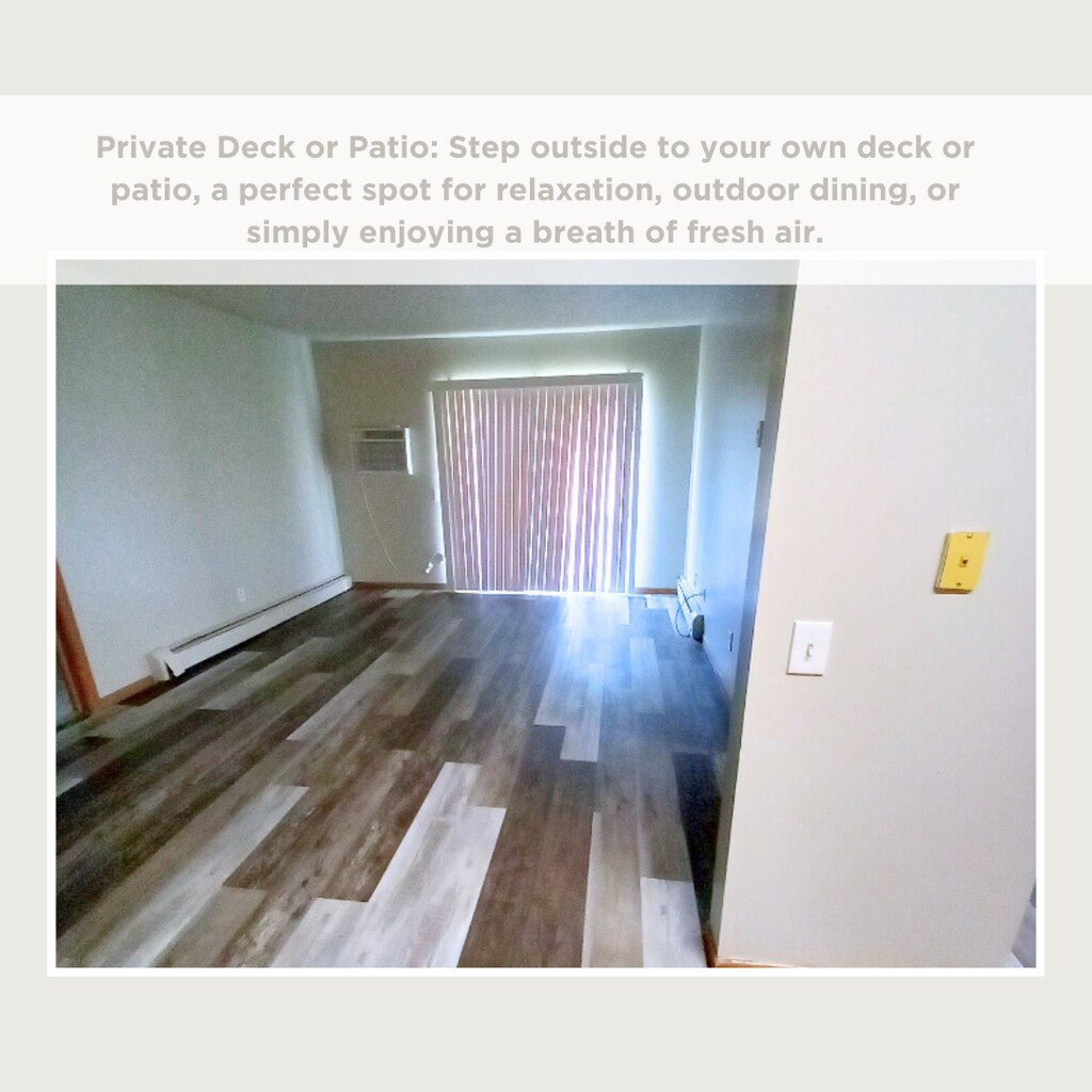 Comfortable Living in Our Cozy 1-Bedroom Apartments Welcome to your new home! Our 1-bedroom apartments offer a comfortable and practical living space, perfect for individuals or couples. These apartments are recently remodeled, ensuring a clean and well-maintained environment for all residents. Compact and Efficient: The layout of our apartments is designed for ease of living. The bedroom is cozy, providing a peaceful space for rest, while the living area is just right for everyday relaxation and dining. Modern Touches: Each apartment comes with essential modern amenities. The kitchen is equipped with up-to-date appliances, making meal preparation simple and enjoyable. The living spaces are uncluttered, offering a neat and tidy atmosphere. Clean and Well-Kept: We prioritize cleanliness and upkeep. You'll find the apartment in immaculate condition upon moving in, and our maintenance team is always on hand to ensure everything stays in top shape. Private Deck or Patio: Step outside to your own deck or patio, a perfect spot for relaxation, outdoor dining, or simply enjoying a breath of fresh air. These 1-bedroom apartments are ideal for those seeking a blend of comfort, convenience, and simplicity. *Rent rates and availability are subject to change. Images, 3D tours, and renderings of units may be similar to available units and do not necessarily represent the specific units available. Please contact the property for current rates and unit availability. Rental Terms Rent: $675 Security Deposit: $675 Pet Policy Cats allowed Small Dogs allowed Amenities 24/7 Emergency Maintenance Coin op Washer/Dryer Utilities included: Water/Sewer Gas Trash Lawn Care Snow Removal Over 2" Appliances Stove/Oven Refrigerator Dishwasher
