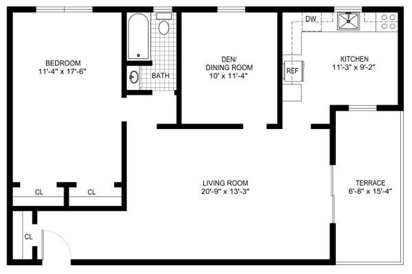 1 Bedroom/1 Bath - Large - Floorplan 2 1 Bedroom/1 Bath w/Den