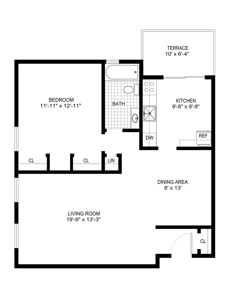 1 Bedroom/1 Bath - Floorplan 2 1 Bedroom/1 Bath - Large