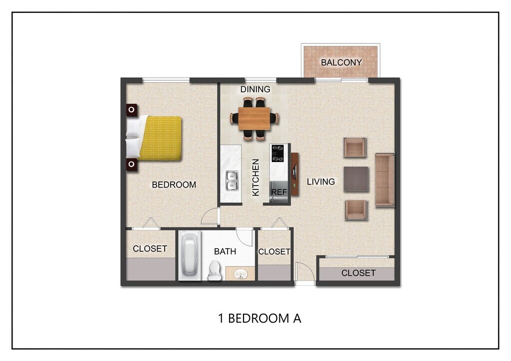 Apartment Model: 1 Bedroom A$1,1701 Bedroom, 1 Bath, 675 sq ftUnavailable![]()