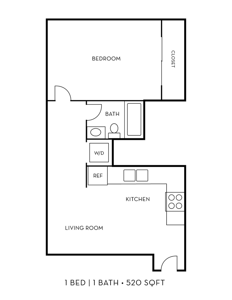 1 Bed, 1 Bath, 520 sq ftModel Gallery