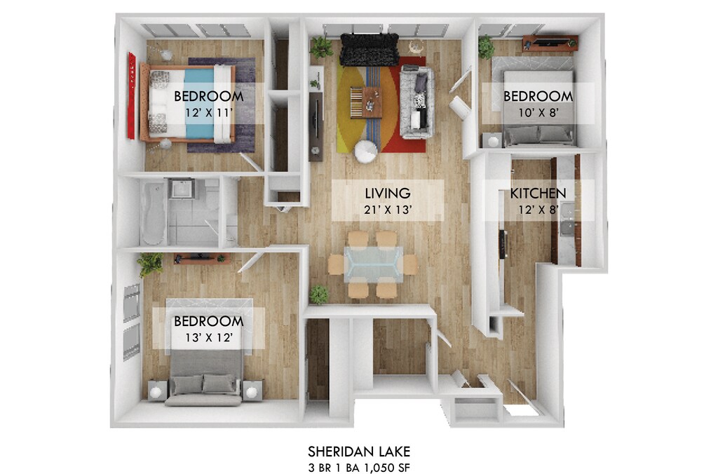 - 3 Bedrooms- Three Bedroom- From $2,5153 Beds, 1 Bath, 1050 sq ftAvailable Now- Model Gallery- Floorplans- Availability Details- Price - Availability Date - Unit - Sq Ft - $2,515 - Available Now - 15-0501 - 1050 - Model Amenities and Features- Features- Air Conditioning