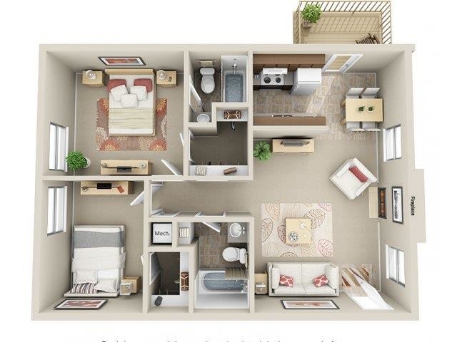 Apartment Model: 2 Bed 2 Bath II2 Bedroom, 2 Bath, 885 sq ftUnavailable2 Bed 2 Bath II - Floorplan 1 2 Bed 2 Bath III