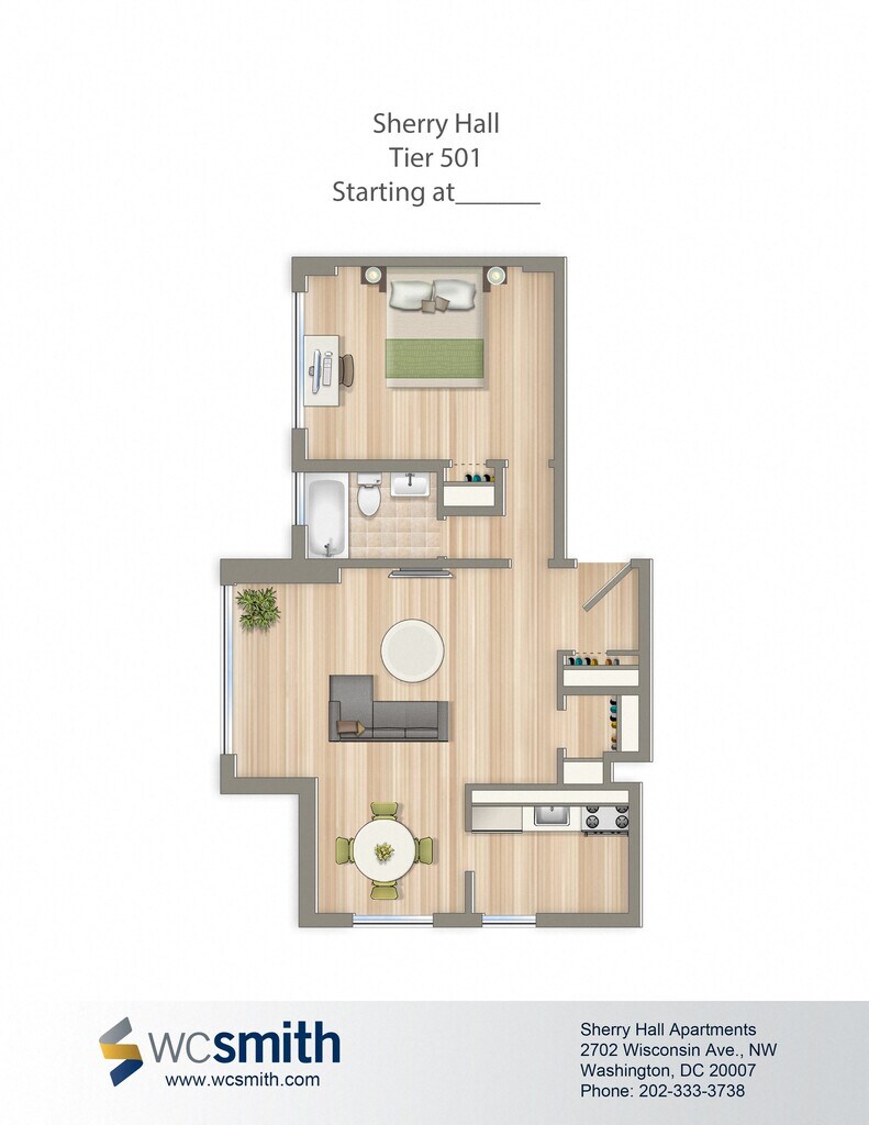 With a prime location in the Glover Park Neighborhood, Sherry Hall is an apartment community with studio, one, and two-bedroom apartments. Inside your apartment home, find beautiful hardwood floors, updated kitchens, and large windows that enhance and brighten your living space. New kitchens are equipped with stainless steel appliances, gas ranges, granite countertops, and light wood shaker cabinets. Life at Sherry Hall is nothing short of convenient: on-site maintenance and management are available, the building provides package receiving services, residents can pay their rent online, and all utilities are included in your rent. WC Smith will not refuse to rent a rental unit to a person because the person will provide the rental payment, in whole or in part, through a voucher for rental housing assistance provided by the District or federal government.