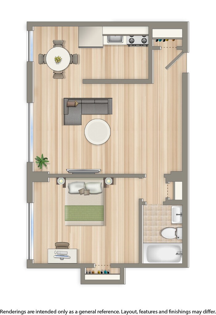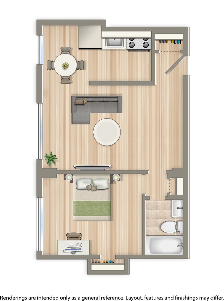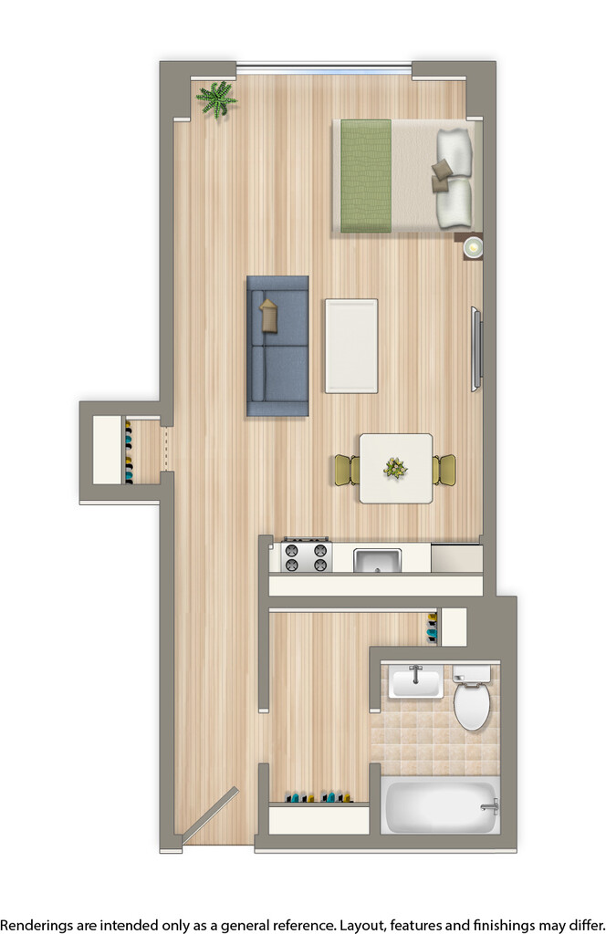 Studio, 1 Bath, 275-282 sq ftAvailable NowModel Gallery