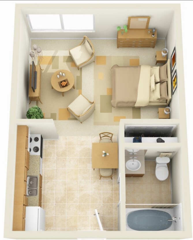 Apartment Model: StudioStudio, 1 Bath, 325 sq ftAvailable Now![]()