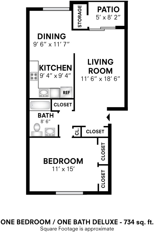 Show Unavailable FloorplansOne Bedroom - 734 sqft