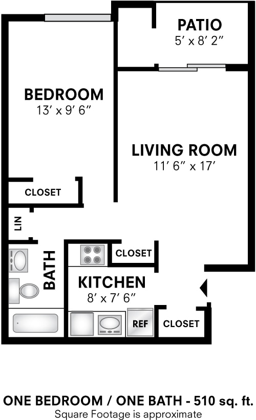 One Bedroom - 510 sqft - Floorplan 1 ![]()