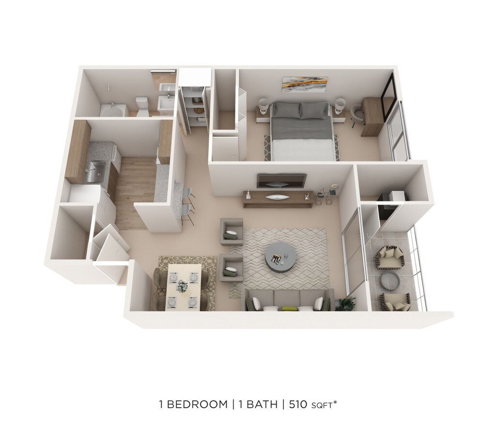 1 Bed, 1 Bath, 510 sq ftModel Gallery