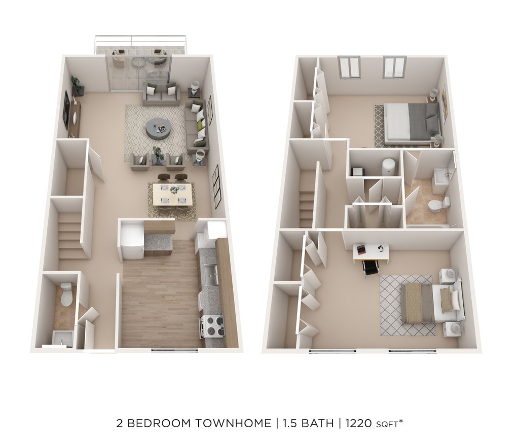 2 Beds, 1.5 Baths, 1220 sq ftAvailable NowModel Gallery