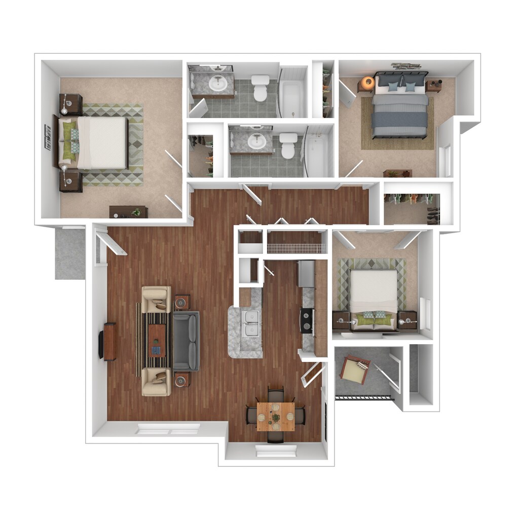 1 Bedroom to 3 Bedroom Apartments at Shiloh Crossing Apartments currently range from $996 to $1,236