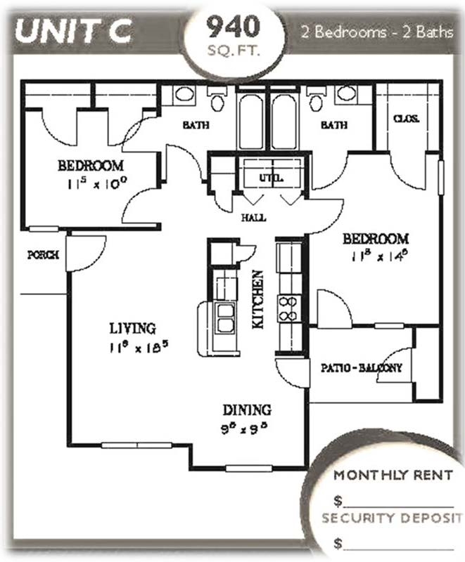 2x2 - Floorplan 2 Apartment Unit: 821Apartment Model: 2x2$1,2022 Bedroom, 2 Bath, 940 sq ftAvailable December 12, 20253 Bedrooms