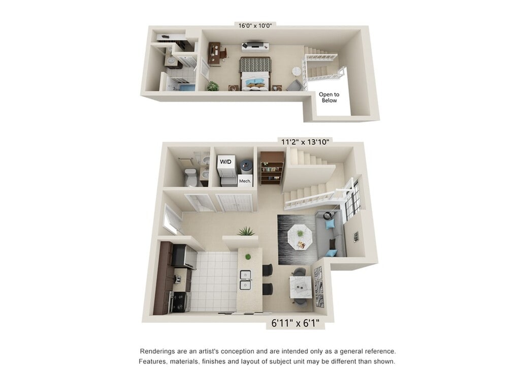 1 Bed, 1 Bath, 613 sq ftModel Gallery