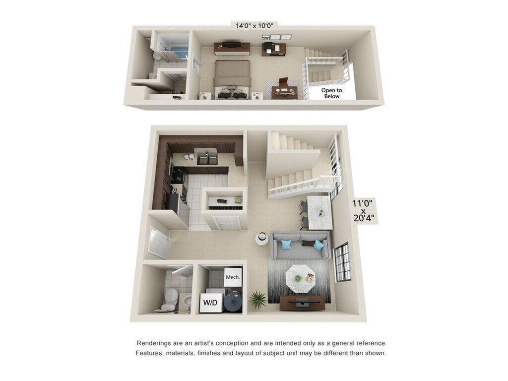 1 Bed, 1 Bath, 590 sq ftModel Gallery