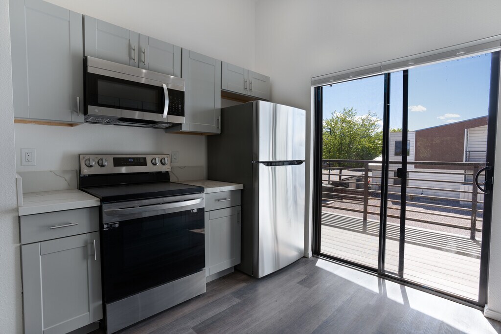 Discover modern living in the heart of the Baca Railyard! Easy access to the Rail Trail, Downtown, Cerrillios Road, plus easily walk to everything in the Baca Railyard. Newly built in 2023, the apartments have an open layout, central air conditioning, forced gas heating, stainless steel appliances, washer & dryers in-unit, private yards or balconies, and a contemporary feel.
