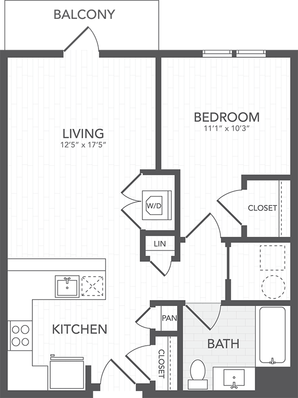 Studio, 1 Bath, 544-564 sq ftAvailable NowModel Gallery