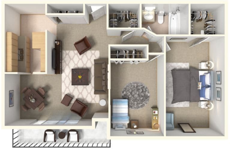 1 Bed, 1 Bath, 665 sq ftAvailable NowModel Gallery