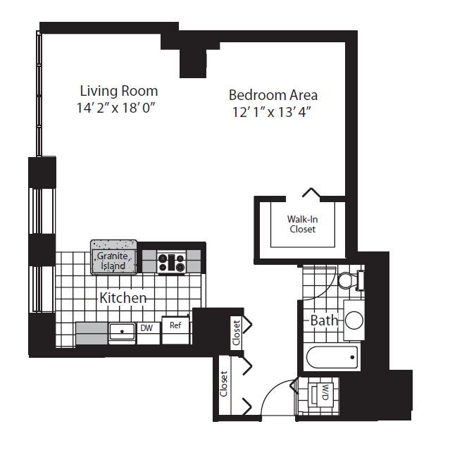Studio, 1 Bath, 550 sq ftAvailable NowModel Gallery