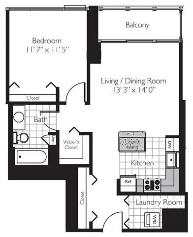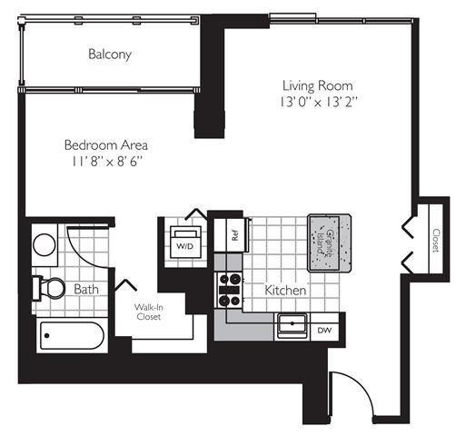 Studio, 1 Bath, 500 sq ftModel Gallery