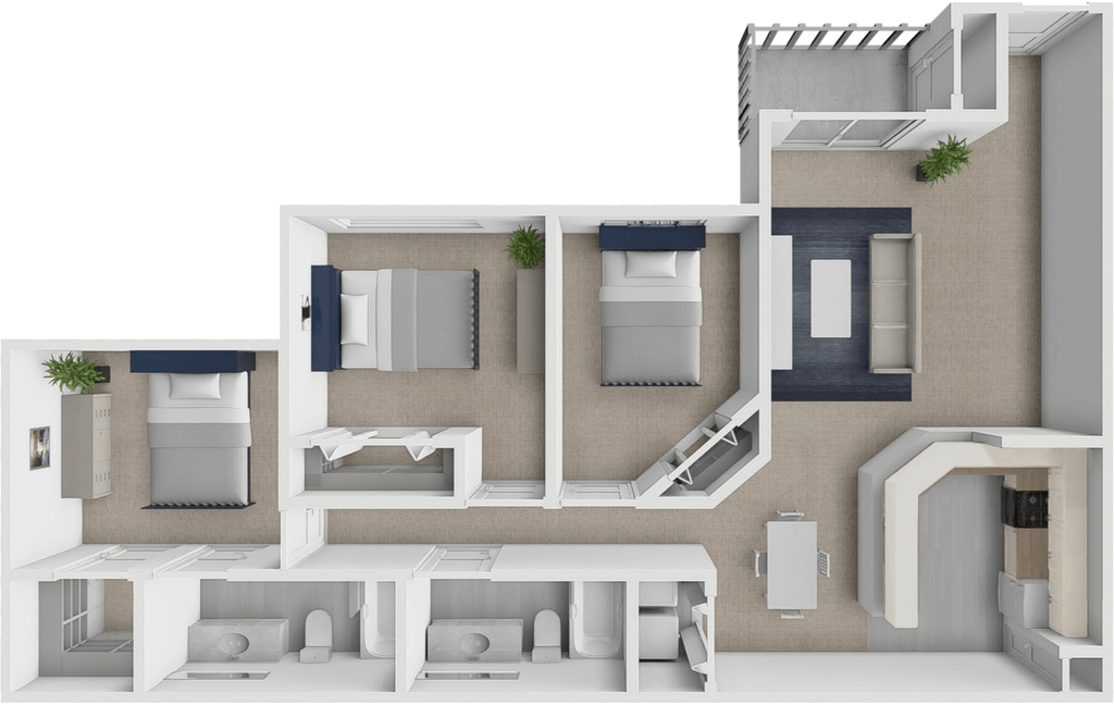 2 Beds, 2 Baths, 1055 sq ftAvailable NowModel Gallery