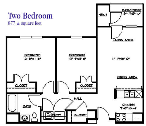 Apartment Model: 2 Bedroom$1,3562 Bedroom, 1 Bath, 856 sq ftUnavailable![]()