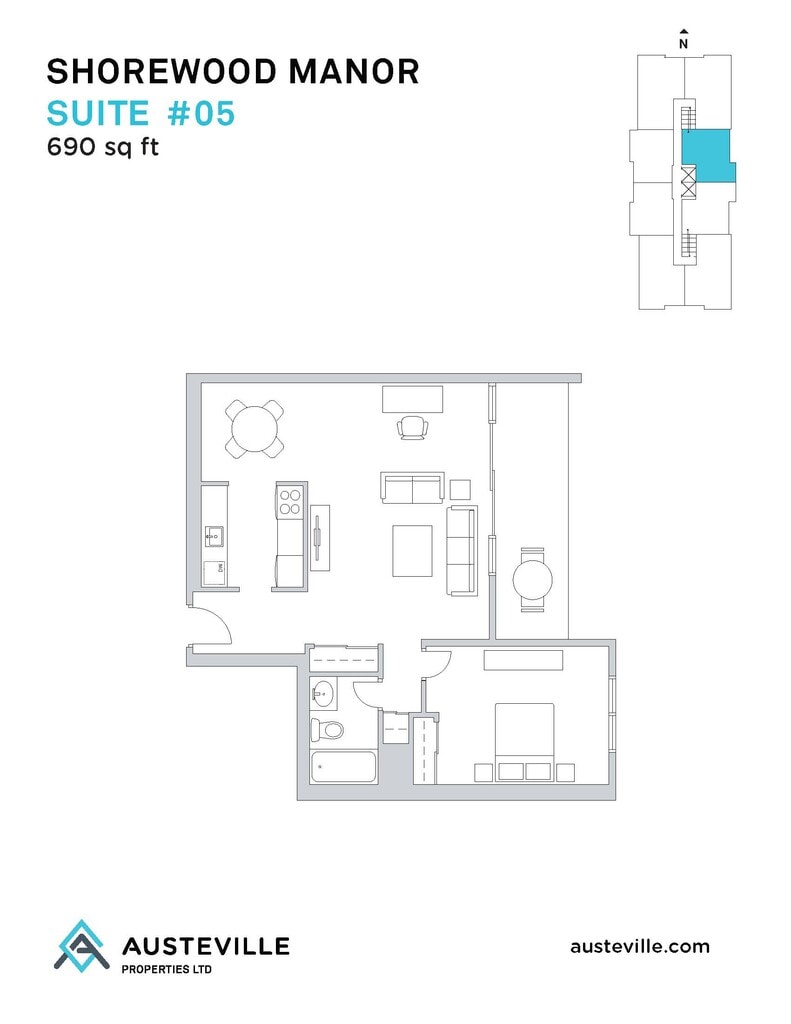 1 Bed, 1 Bath, 690 sq ftAvailable NowModel Gallery