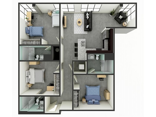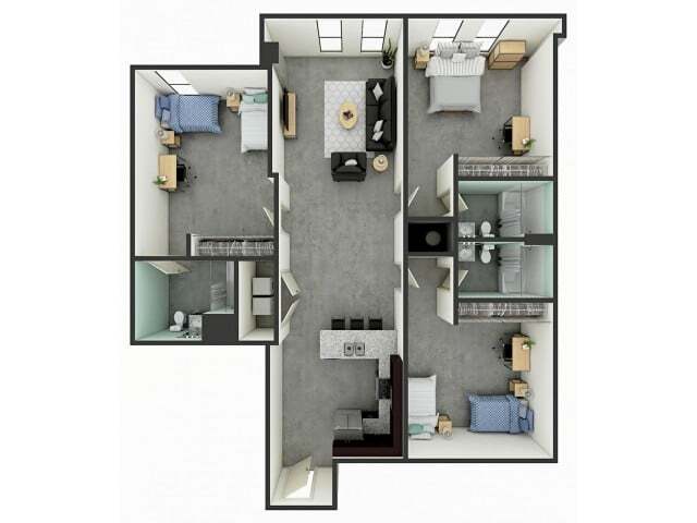 C3 - Floorplan 1 Apartment Unit: Shared No WindowApartment Model: C3$1,1103 Bedroom, 3 Bath, 1294 sq ftAvailable NowApartment Unit: Private No WindowApartment Model: C3$1,6653 Bedroom, 3 Bath, 1294 sq ftAvailable August 8, 2026Apartment Unit: Private Top Floor No WindowApartment Model: C3$1,6853 Bedroom, 3 Bath, 1294 sq ftAvailable August 8, 2026Floorplan C4