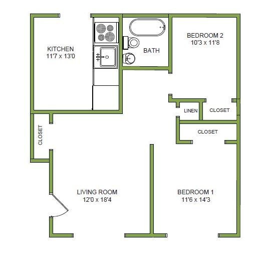 1 Bedroom - Floorplan 11 Apartment Unit: 100Apartment Model: 1 Bedroom$1,9551 Bedroom, 1 Bath, 650 sq ftAvailable Now2 Bedrooms