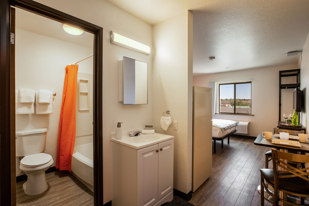 Siegel Select Albuquerque offers great apartment rentals near Downtown Albuquerque. We are close to many restaurants and schools like The University of New Mexico and Carrington College. Siegel Select offers standard & large studios and 1 & 2 bedroom apartment suites. First of all, each suite has great amenities! This includes flat screen TVs and Wifi access. Additionally, each suite has dressers and hanging closet space. Above all, our utilities and cable are included. Lastly, there is a laundromat onsite, though we also have housekeeping services available. Sparkling pool! Here at Siegel Select Albuquerque, we don't have any credit checks or long term leases. We have daily, weekly and monthly rates - call now for more information!
