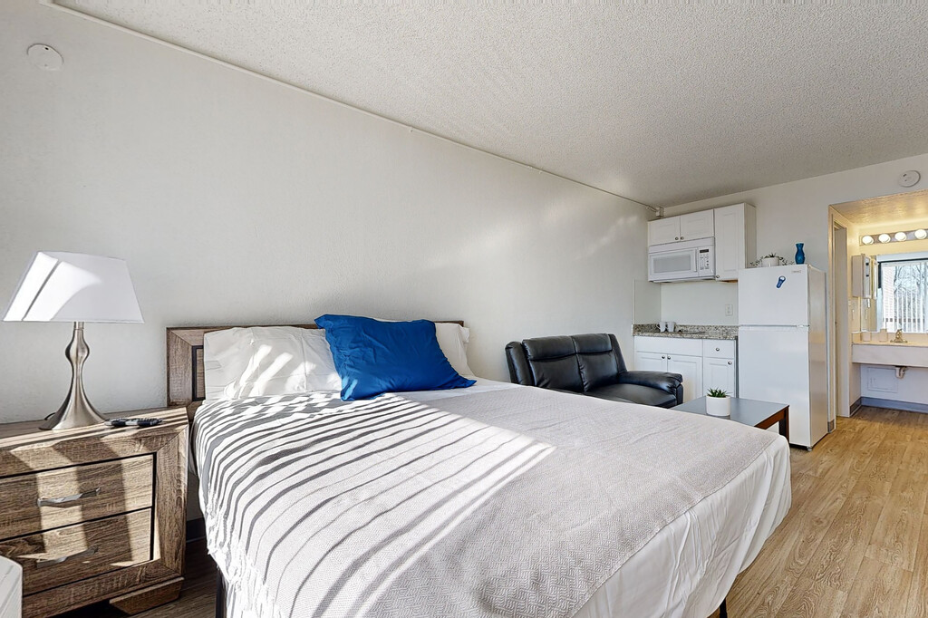 Siegel Suites 7th Street Apartments are a great place to stay in the beautiful city of Reno, Nevada. You are literally in walking distance to downtown Reno and the entertainment district. Our apartments are conveniently located near restaurants, cafes, parks, bowling alley, and other popular Reno destinations. We rent fully furnished studio apartments that are move-in ready with and without kitchenettes. Want to bring your dog or cat? No problem. We are pet friendly! We have no credit check, no long term leases, and your choice of low weekly or monthly rent. Our studio apartments are a great value, with free utilities, free cable TV, free WIFI, and more. During the hotter months, take a dip in our sparkling pool. Call today for more information and to book your stay with Siegel Suites 7th St. **Rate does not include other move in costs or fees, see registration agreement for details.